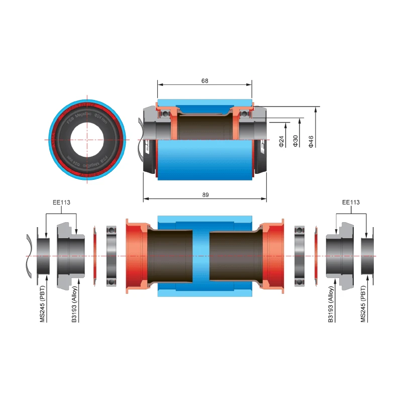 Adaptador de pedalier fabricado en aluminio, válido para instalar bielas de eje de 24mm de diámetro en cualquier pedalier de 30mm de diámetro interior y 68mm de ancho.