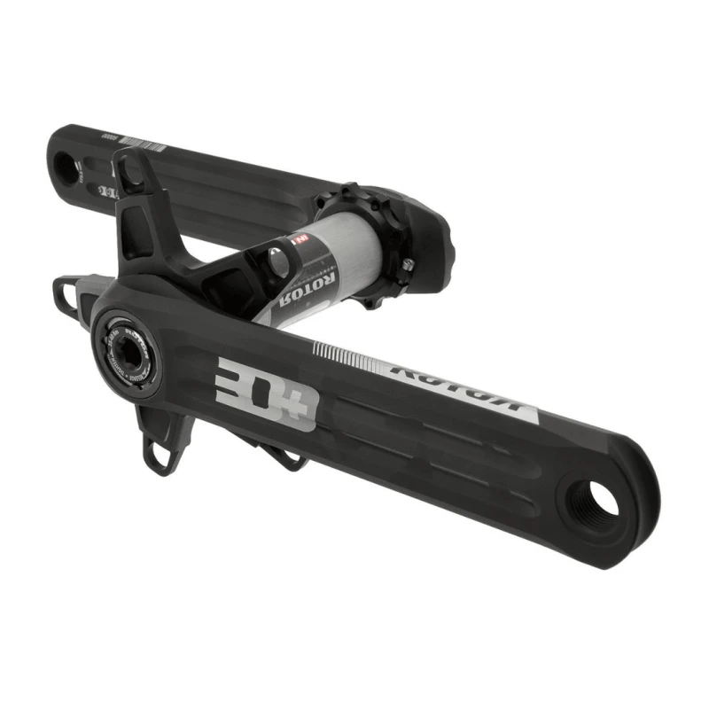 Conjunto de bielas Rotor 3D+ ( fabricadas en aluminio 7055 mediante mecanizado CNC y con eje de 30mm ) con medidor de potencia en la biela izquierda y tecnología INpower, integrada en el eje de pedalier, quedando protegido de golpes, agua y suciedad.