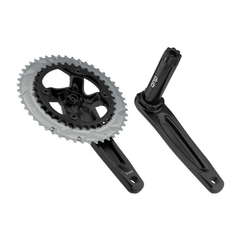 Este juego de bielas SRAM de la serie Rival es compatible con rodamientos interiores DUB y está diseñado para transmisiones de dos velocidades adelante y doce velocidades atrás. La distancia de 13 dientes X-Range™ crea una buena base para una gradación uniforme de los engranajes.