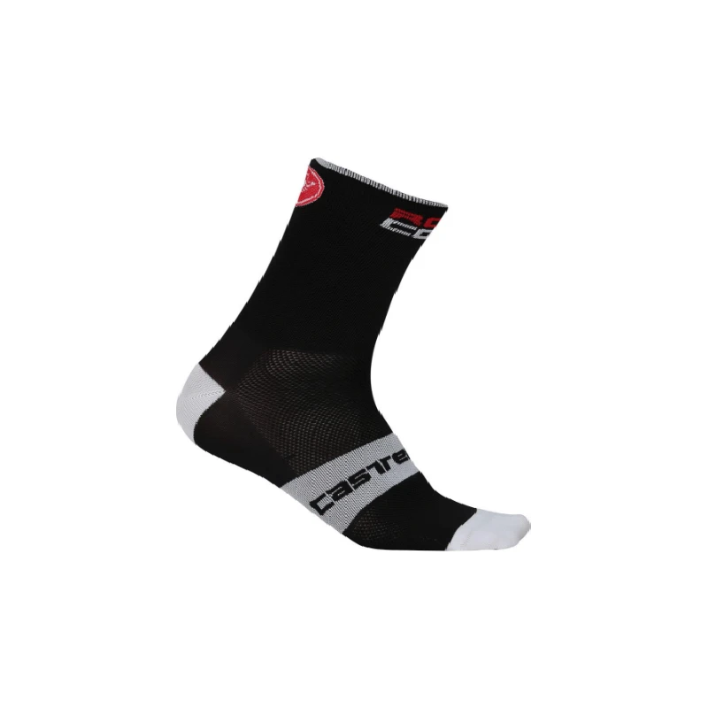 Los calcetines Rosso Corsa de Castelli usan una malla diáfana alrededor del pie y una correa de soporte en el mediopié. La caña de 9cm ofrece la cantidad justa de compresión para que se sienta bien y cómodo.