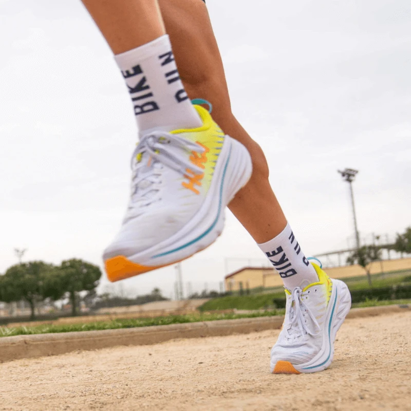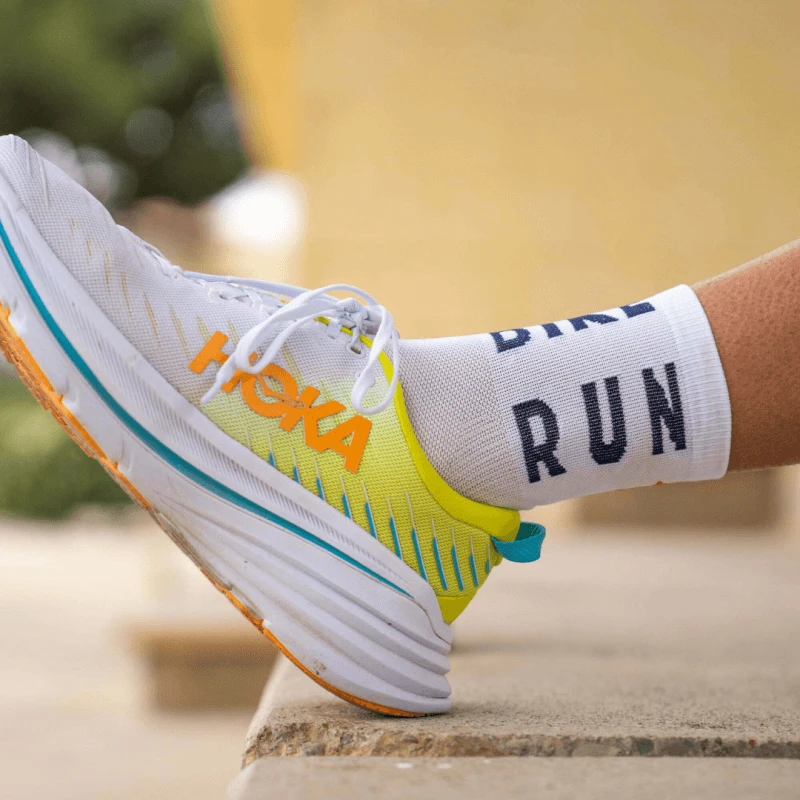 Tejidos de alta calidad con un nuevo comfort. Añadimos un extra de refuerzo en la planta del pie, consiguiendo un calcetín con una comodidad óptima para la práctica del triatlón y running.