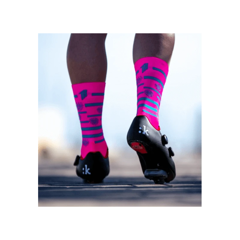 Calcetín Sporcks Splinders Hut PinkCalcetín de ciclismo ultra ligero con un ajuste de compresión bajo y fabricado principalmente en Meryl®. Están diseñados para ofrecer máxima transpiración y gran comodidad. Confeccionados para un alto rendimiento en la bici mezclando calidad y diseño por partes iguales.