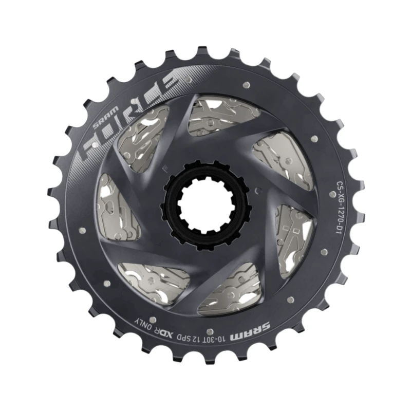 El cassette SRAM Force XG-1270 está diseñado para los componentes Force eTap. La tecnología X-Range™ asegura cambios de marcha suaves y precisos. Con la gradación de engranajes bien pensada con un amplio ancho de banda y la construcción MINI-CLÚSTER™ que ahorra peso, siempre encontrarás el engranaje adecuado.