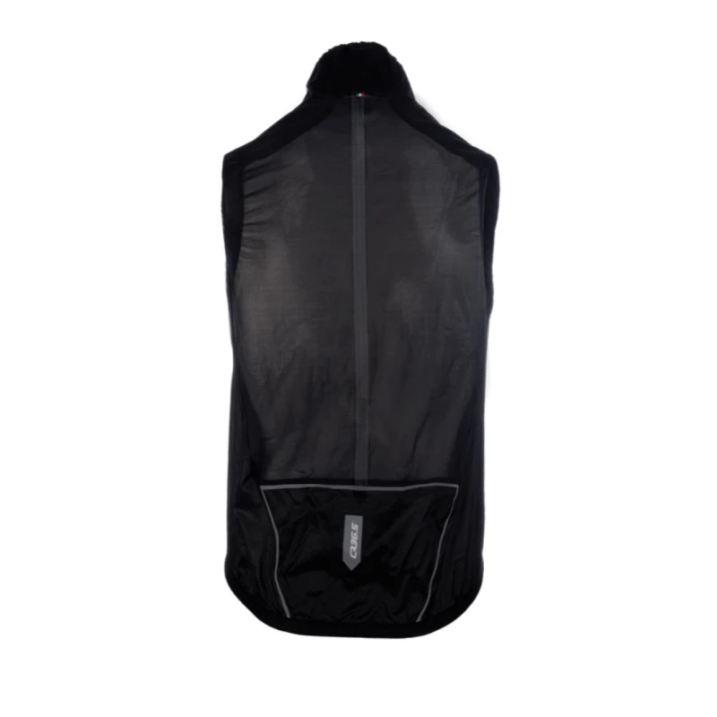 Chaleco Q36.5 Air Vest NegroEsta prenda cuenta con un tejido prácticamente mágico –elástico de alta densidad y muy ligero–; un auténtico chaleco antiviento ligero, compañero ideal para pedalear durante todo el año.Es extremadamente compactable, de muy poco volumen, transpirable y cuenta con un duradero tratamiento hidrorrepelente.