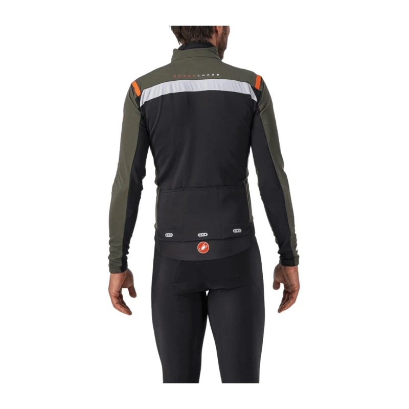 La chaqueta Castelli Alpha RoS 2 Light Corsa GORE-TEX INFINIUM™ está diseñada para salidas de otoño y los días suaves de invierno. El tejido GORE-TEX INFINIUM™ garantiza protección contra el viento en la parte delantera, además de ofrecer la máxima transpirabilidad y repelencia al agua para mantener el cuerpo seco en caso de niebla o de lluvia ligera. Este tejido también protege también de las salpicaduras de agua de la rueda en pleno pedaleo. La capa interna está fabricada con el tejido ProSecco Strada y lleva una cremallera que permite abrirla de forma independiente para garantizar un perfecto control de la ventilación. El tejido Nano Flex Xtra Dry en la parte trasera proporciona un elevado nivel de aislamiento, permitiendo al mismo tiempo la evacuación de la humedad. Tiene un ajuste excelente.