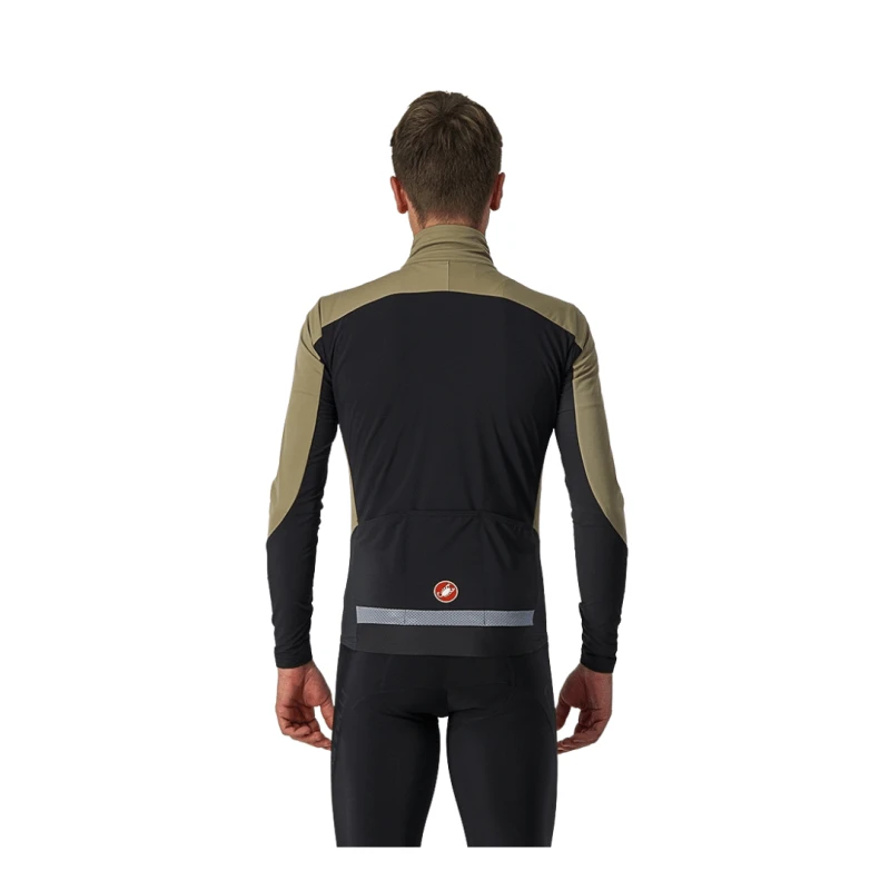 Castelli Beta RoS está diseñada para las salidas durante los meses de otoño y primavera. Su fabricación con tejido Polartec NeoShell en la parte delantera y en las mangas ofrece protección cortavientos e impermeable, además de ser altamente transpirable.
