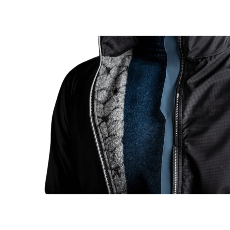La inspiración para su diseño proviene de lo aprendido en la práctica de los deportes de invierno en los Dolomitas (esquí alpino, esquí de montaña, montañismo…). Con esas necesidades repensadas para la práctica del ciclismo, no estamos ante una chaqueta convencional de invierno sino que se trata de una prenda que integra protección bajo una membrana confeccionada mediante mapeo corporal. Esta técnica garantiza unas altas propiedades de aislamiento térmico e hidrorrepelencia, gracias a su estructura de capas tipo “sandwich”.