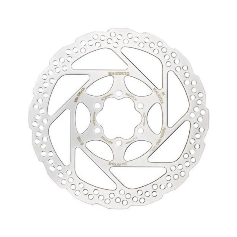 Disco de freno de una pieza de 6 orificios con tornillos incluidos. Los discos Shimano RT56 destacan por su calidad a un precio muy reducido. Están diseñados para usar únicamente con pastillas de resina (orgánicas) para maximizar el rendimiento y ofrecer una frenada potente y fiable en todo momento.