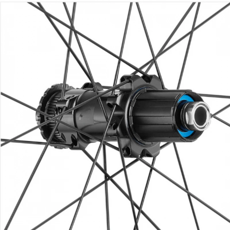 El sistema se completa con bujes de aluminio de diseño CNC que soportan 24 radios «straight pull», garantizando la máxima rigidez global tanto en aceleración como en frenada, sin ninguna influencia debido a la naturaleza asimétrica de las fuerzas procedentes del disco y del cassette de piñones.