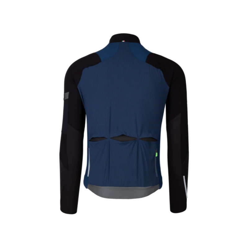 La zona del cuello cuenta con un nuevo diseño que mejora la protección de la zona y la comodidad – más hermético, menos presión y más comodidad –, para que esta parte siga la línea del cuerpo de manera ergonómica cuando el ciclista esté sobre la bici. El resultado del nuevo diseño del cuello es el de liberar completamente la zona de presiones y molestias, así como de mejorar la protección ante el frío. Esta prenda cuenta también con el bolsillo invisible Q36.5, así como nuestro bolsillo superior en el antebrazo.