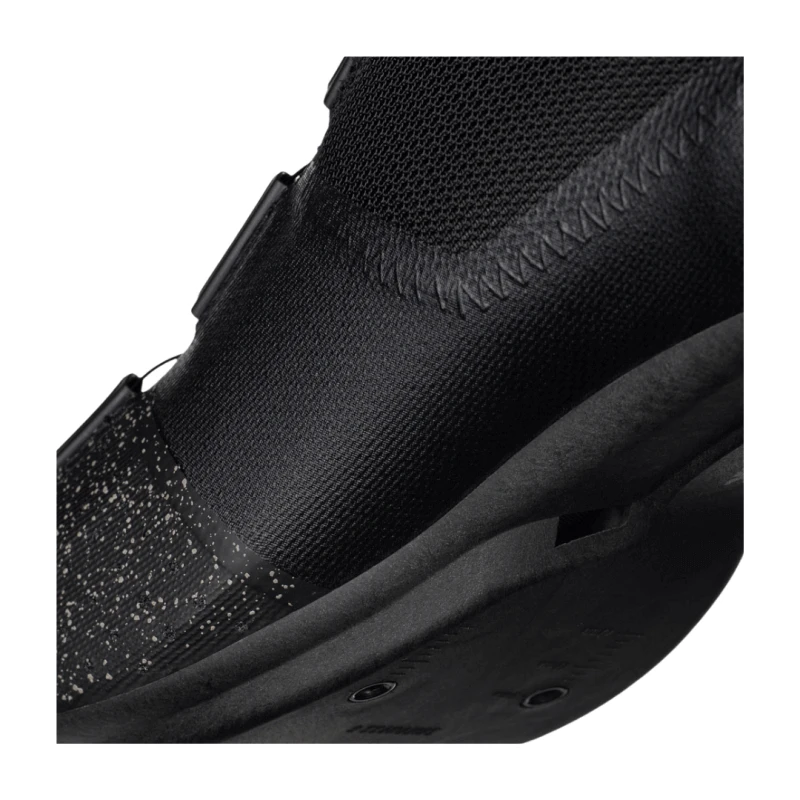 El cierre es rápido y seguro, realizado mediante un dial BOA IP1 microajustable en un patrón Overcurve. Overcurve es una construcción de zapatilla con un cuello escalonado que se envuelve alrededor del tobillo, trazando la desalineación natural de las dos protuberancias óseas del tobillo: el lateral y el medial. El resultado es una forma asimétrica, con los penales laterales de la zapatilla curvados sobre el pie de fuera hacia dentro. La nueva suela exterior R4, moderadamente rígida, consigue un equilibrio entre confort y eficacia de pedaleo que la convierte en un verdadero todoterreno. El R4 tiene un nuevo perfil, aún más bajo, y está optimizado estructuralmente con una composición que incluye un 15% de fibra de carbono inyectada. La suela exterior R4 proporciona una ventilación eficaz y una canalización interna para la gestión de la temperatura. La posición de la cala es un poco retrasada en comparación con los ajustes tradicionales, para optimizar la eficiencia de pedaleo y reducir la compresión de la rodilla. Especialmente adecuada para posiciones aerodinámicas adelantadas muy agresivas.