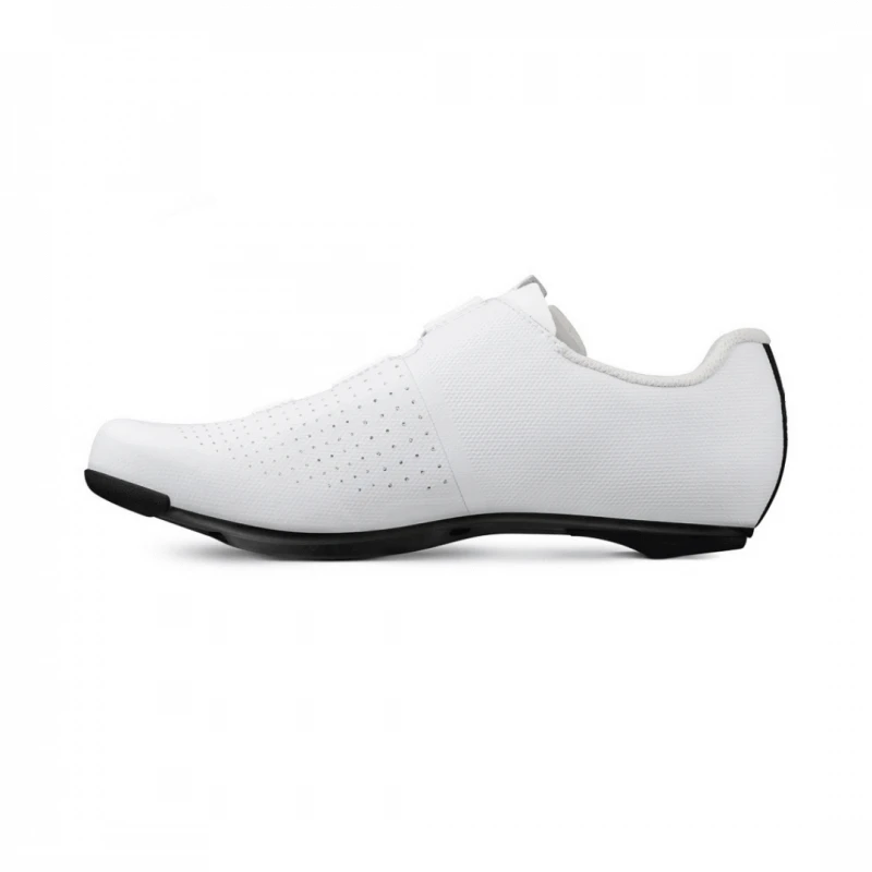En la base, la composición de fibra de carbono de la suela R2 ahorra peso y proporciona una mayor rigidez, con un índice de rigidez de 10, lo que hace que esta suela sea la más sensible de la gama fizik. Una amplia entrada de aire y una profunda canalización interna proporcionan un flujo de aire refrigerante que ayuda a regular la temperatura. La posición de la cala está ligeramente más atrás en comparación con los ajustes tradicionales para optimizar la eficiencia del pedaleo y reducir la compresión de la rodilla, especialmente adecuada para posiciones aerodinámicas muy agresivas y adelantadas.