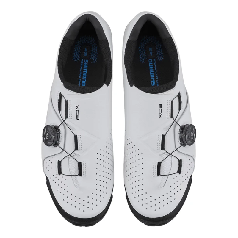 Las zapatillas Shimano XC3 para MTB están diseñadas como una prenda de competición de alto rendimiento en la modalidad de XC – Cross Country. La construcción del empeine, de estructura envolvente, y la entresuela sin costuras integrados ofrecen un excelente ajuste, estabilidad y ligereza, además de permitir una óptima transpiración y durabilidad gracias a su composición de piel sintética con perforaciones.