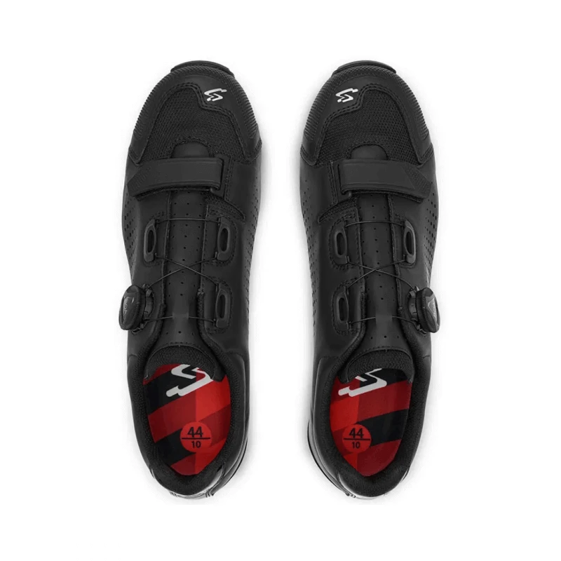 – BOA El sistema de cierre patentado BOA consta de ruedas micro ajustables con cable de acero. La combinación de estos elementos permite al ciclista obtener una sujeción uniforme, sin puntos de tensión y, debido a la ausencia de tiras de velcro también permite una mayor circulación de aire en la parte delantera del pie.